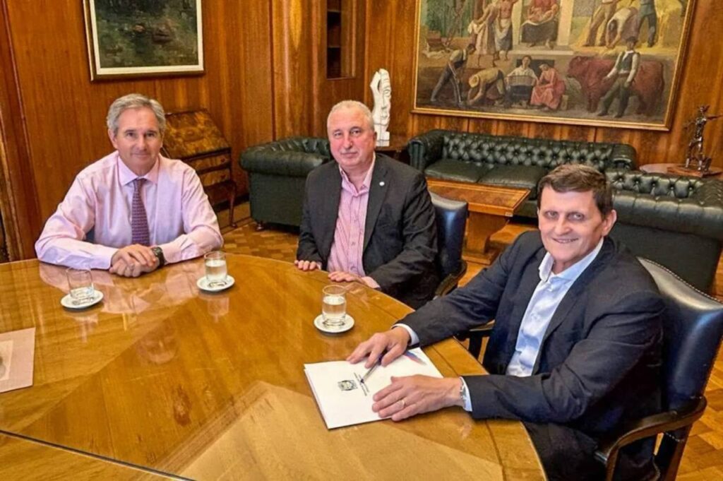 El gobernador de Misiones, Hugo Passalacqua, y el ministro de Hacienda, Adolfo Safrán, mantuvieron hoy un encuentro con el secretario de Finanzas de Nación, Pablo Quirno, para gestionar, entre otros la quita de retenciones a la madera y la deuda de la Anses con la provincia.