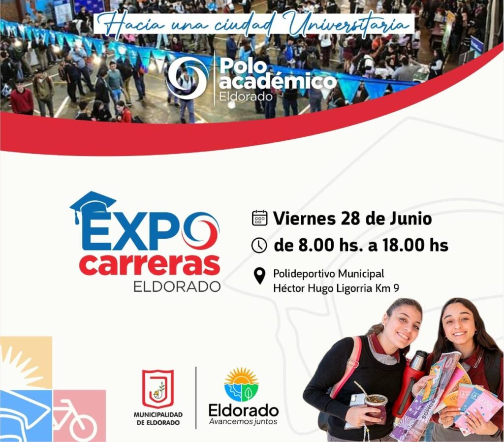 El Polo Educativo de la Municipalidad de Eldorado se prepara para una nueva edición de la Expo Carrera. El próximo 28 de junio, en el Polideportivo Municipal “Héctor Hugo Ligorria”, de 8 a 18 horas, los estudiantes secundarios podrán tener su primer acercamiento a la vida universitaria, accediendo a información sobre distintas posibilidades educativas y ocupacionales.