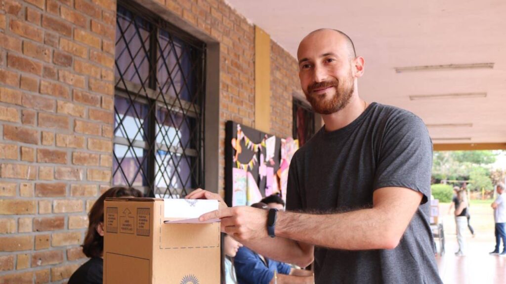 Jornada calurosa en la Capital del Monte, no impide la participación ciudadana. El Intendente actual, Pablo Hassan votó a las 1030 en el Instituto Concordia.