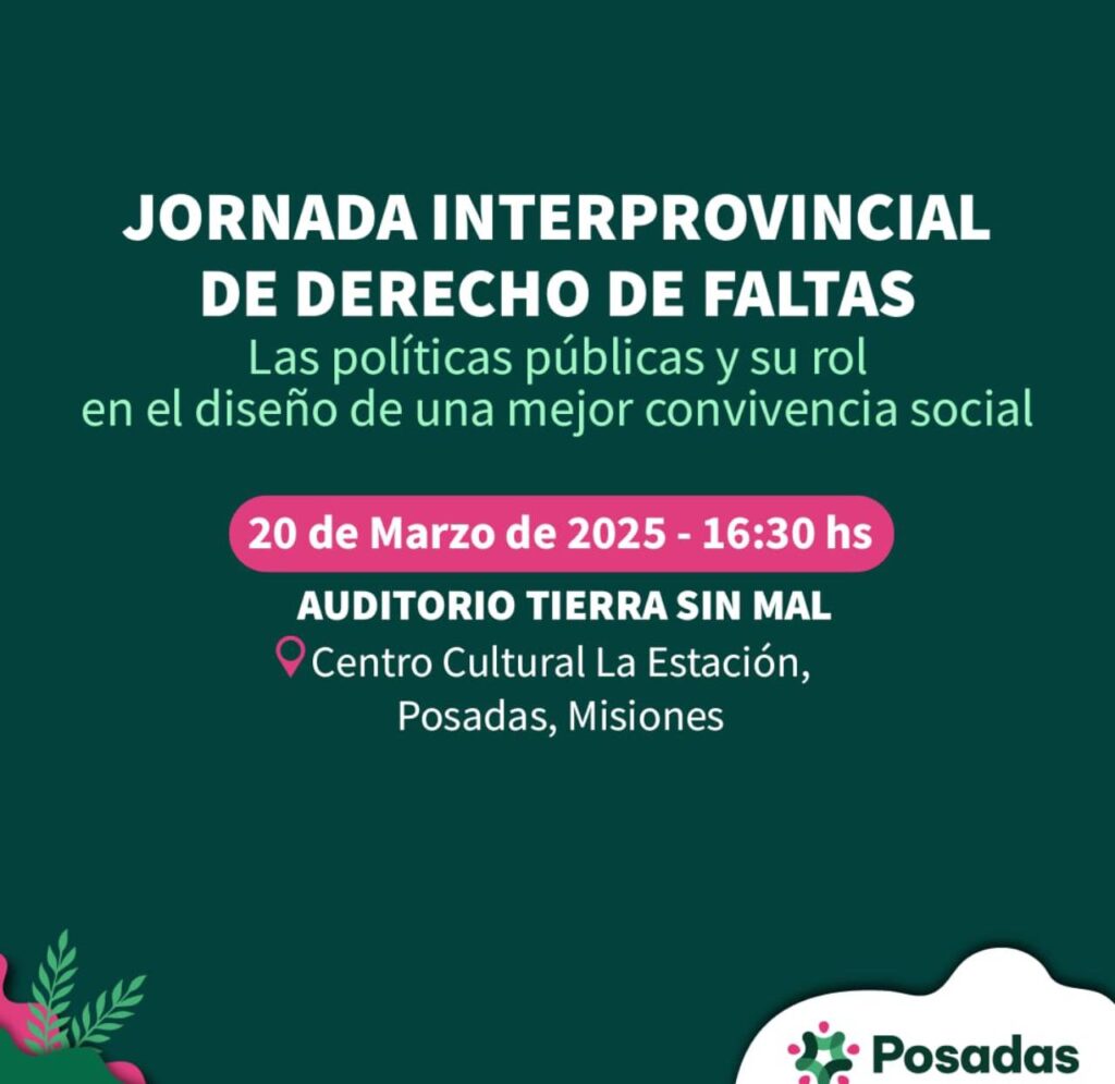 Las políticas públicas y su rol en el diseño de una mejor convivencia social serán el eje de la Jornada Interprovincial de Derecho de Faltas, un encuentro que se realizará el jueves 20 de marzo a las 16:30h en el Auditorio Tierra Sin Mal y reunirá a destacados especialistas en políticas públicas y derecho, con el objetivo de analizar el impacto de las normativas en la convivencia social.