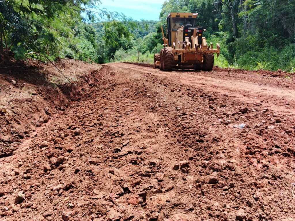 Por otro lado, se ejecutan trabajos articulados con los gobiernos municipales para la mejora de caminos vecinales, como en el caso de Pozo Azul, Garupá, Candelaria, Panambí y Los Helechos.