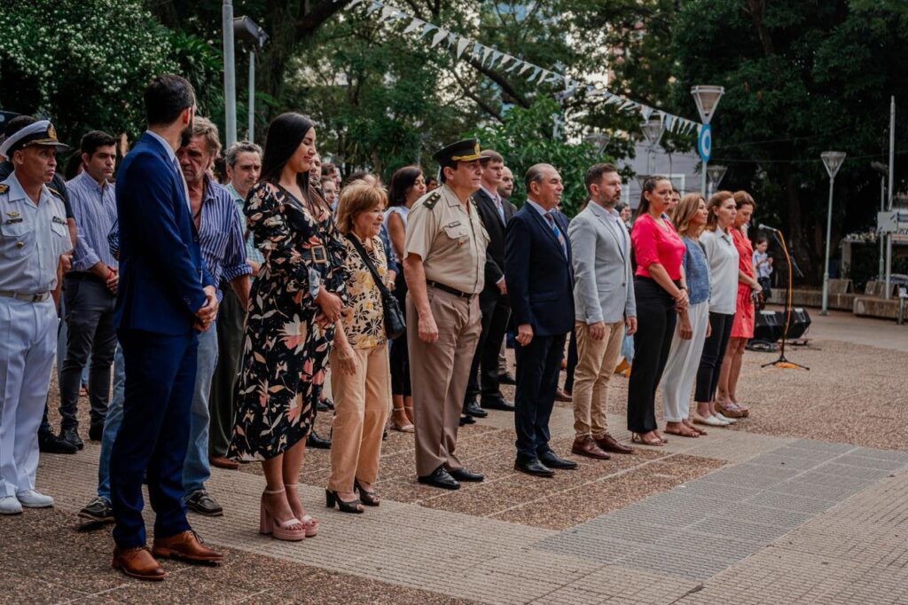 El intendente de Posadas, ingeniero Leonardo Stelatto, encabezó la celebración acompañado de funcionarios provinciales, miembros del gabinete municipal, fuerzas armadas, autoridades eclesiásticas, y miembros de la Agrupación Sanmartiniana, entre otras.