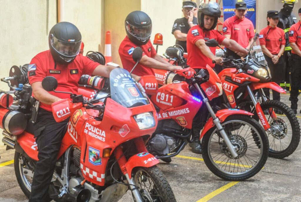 Este lunes se presentaron y entregaron tres motobombas al Cuerpo de Bomberos de la Policía de Misiones. Estos vehículos están equipados para combatir el fuego de manera rápida y ágil en espacios reducidos. Sumamos equipamiento, pero necesitamos que la gente colabore y sume responsabilidad, refelexiónó el ministro de Gobierno, Marcelo Pérez.