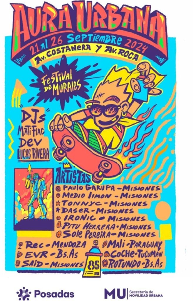 La Secretaría de Movilidad Urbana organiza una gran movida artística que reunirá a grandes artistas urbanos y muralistas de la ciudad, del país e internacionales. El encuentro será del 21 al 26 de septiembre, en el Skate y Bike Park ubicado en Av. Costanera y Av. Roca de la ciudad de Posadas.