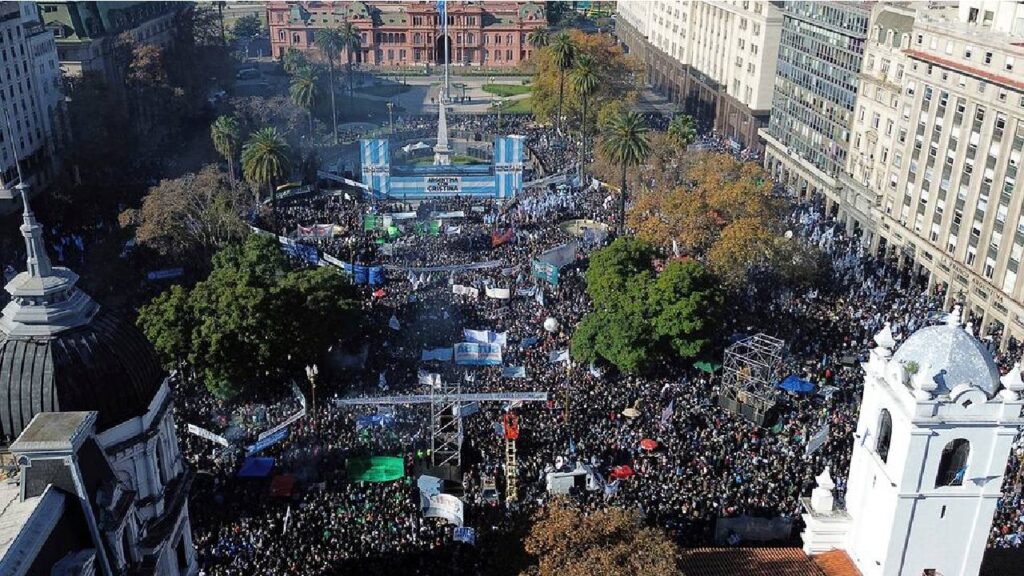 La exmandataria le envió «un abrazo muy grande a esa Plaza maravillosa, grande, desbordada, que me hace acordar a la Plaza del 9 de diciembre del 2015». Además, les agradeció el cariño y les pidió juntar «codo con codo, fuerza con fuerza, brazo con brazo, porque tenemos razón. La razón nuestra es la de los pueblos que se niegan a ser arrasados y a ser colonia». «Compatriotas, como siempre, con firmeza, trabajo y siempre tirando para adelante. Los quiero mucho y los abrazo con el corazón. Fuerza», concluyó.