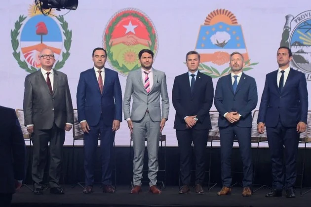 El acto en la nave central del Centro Cultural La Redonda que sirvió de escenario para la firma del acta fundacional del bloque de gobernadores de la Región Litoral contó con el anfitrión Maximiliano Pullaro (Santa Fe); el ahora presidente rotativo de la RL, Gustavo Valdes (Corrientes); Rogelio Frigerio (Entre Ríos) Leandro Zdero (Chaco) y Hugo Passalacqua (Misiones), así como del vicegobernador de Formosa, Eber Wilson Solís, en representación del mandatario de esa provincia, Gildo Insfrán.