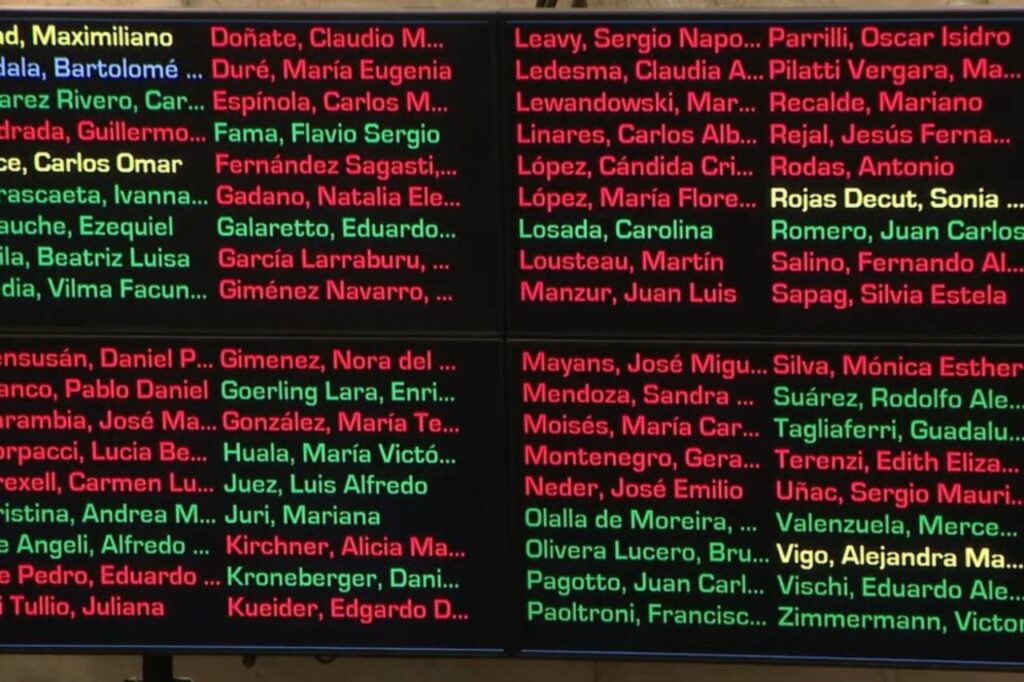 El Frente de Todos, primero en reclamar una sesión por esta cuestión, se mostró unido y tuvo a sus 33 legisladores para dicha moción. A ellos se unieron los opositores anti kirchneristas mencionados con anterioridad y el radical Pablo Blanco. En tanto, se abstuvieron la peronista disidente Alejandra Vigo, esposa del ex gobernador cordobés, Juan Schiaretti, los misioneros Arce y Rojas Decut, y el radical Maximiliano Abad.