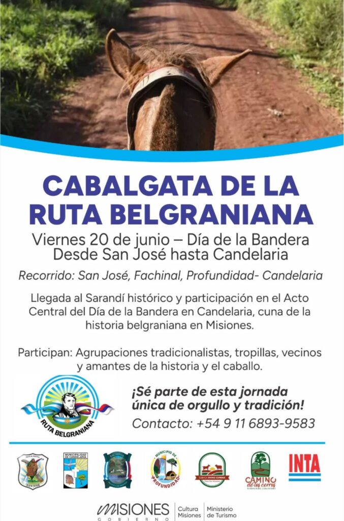 Desde San José hasta Candelaria, pasando por Fachinal y Profundidad, la Cabalgata Belgraniana Misionera propone rendir homenaje al General Manuel Belgrano. La llegada será en el histórico Sarandí de Candelaria, donde los jinetes y amazonas participarán del Acto Central por el Día de la Bandera.