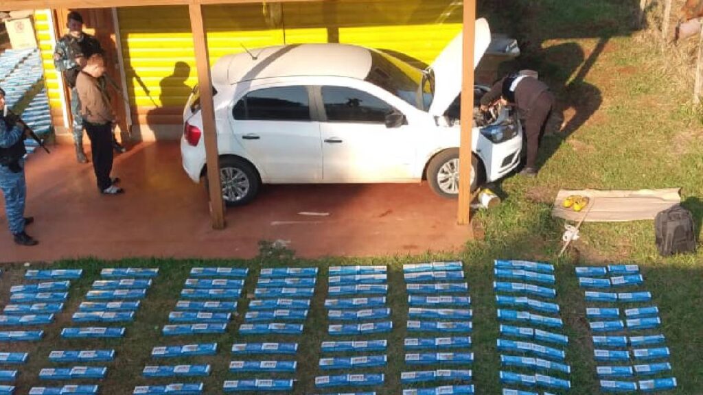En el procedimiento hallaron 26 cajas grandes conteniendo 22,500 atados de cigarrillos de origen extranjero, dosis de cocaína preparadas para la distribución y un Volkswagen Gol Trend denunciado como robado en días atrás en la provincia de Buenos Aires, la misma tenía la chapa patente apócrifa.