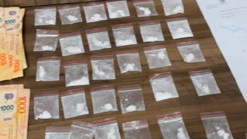 Rápidamente, lo detuvieron y secuestraron los elementos, dando intervención a el personal policial de Drogas Peligrosa que realizó el narcotest que arrojó positivo para clorhidrato de cocaína con un total de 37 envoltorios con un pesaje de 33 gramos.