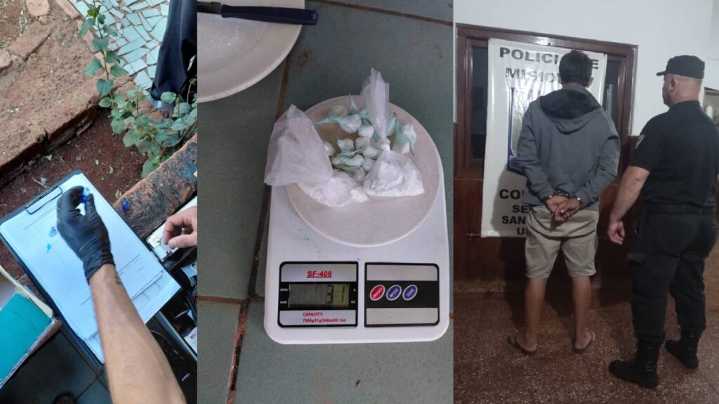 El implicado, investigado ahora por la Policía de San Vicente por la presunta comercialización de droga, fue detenido durante un allanamiento a raíz de una causa por delitos contra la propiedad. Allí, los investigadores hallaron 31 gramos de cocaína distribuidos en 20 envoltorios, junto a 1.348.000 pesos y 25 reales, lo que refuerza la hipótesis de comercialización de estupefacientes.