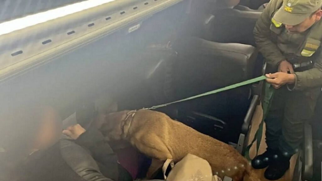 Durante el control efectuado sobre de los pasajeros, el can detector de narcóticos “Hilary” reaccionó de manera exaltada, como habitualmente lo hace ante la presencia de estupefacientes, señalando a una de las pasajeras.