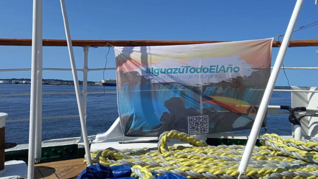 Aprovechando la visibilidad de la embarcación colocan banderas de la campaña «Iguazú todo el año» con códigos QR donde en cada puerto donde atracan los turistas pueden escanear este código y conocer la belleza de Puerto Iguazú, las Cataratas y la naturaleza de Misiones.