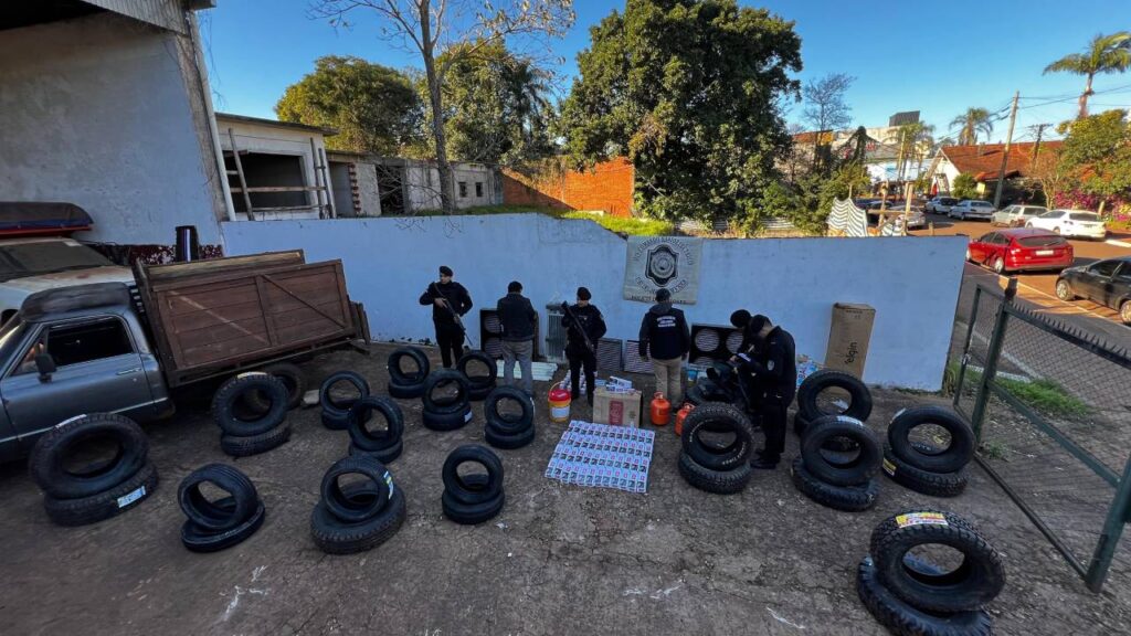 Seguidamente, constataron que llevaba 34 neumáticos de diferentes medidas, 4 cajas condensadores, 3 cajas válvulas de expansión térmica, 2 vaporizadores, 10 manómetros, 2 cilindros de gas, 50 gruesas de cigarrillos de origen extranjero, entre otros elementos de contrabando valuados en 5 millones de pesos.