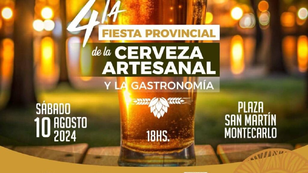 Será la cuarta edición de la Fiesta Provincial de la Cerveza Artesanal y Gastronomía se cumplirá el próximo sábado 10 de agosto en la Plaza San Martín de Montecarlo.
