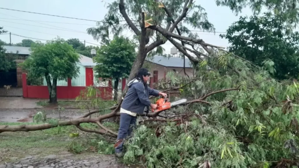 Comenzaron las tareas para poder sacar las ramas caídas luego del temporal del jueves.