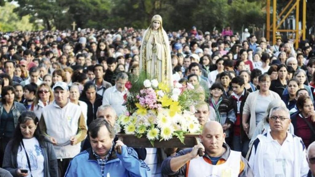 Con una masiva concurrencia, más allá de los que llegaron con la procesión que partió desde las 6 de la mañana desde la Catedral de Posadas, se celebró la festividad de Nuestra Señora de Fátima, en su edición número 61 en el Santuario dedicado a la Virgen en Miguel Lanús.