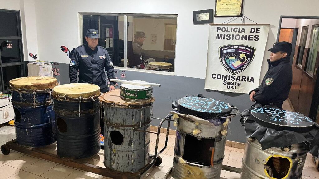 El procedimiento se concretó ayer en horas de la noche, cuando los agentes de la Comisaría 6ta, visualizaron a varios hombres trasladando tambores y un redoblante por un pasillo interno de la chacra 103 de Posadas, quienes al advertir la presencia policial, se dieron a la fuga, abandonando los elementos.