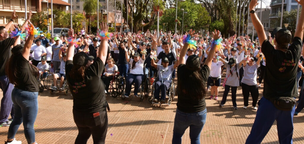La caminata se realizó el pasado jueves en la plazoleta Manuel Belgrano del Centro Cívico de Oberá. Como parte de la actividad profesores de Educación Especial realizaron actividades antes de iniciar con el recorrido.