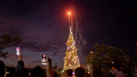 Familias y vecinos acompañaron el encendido del árbol en el Parque de las Fiestas