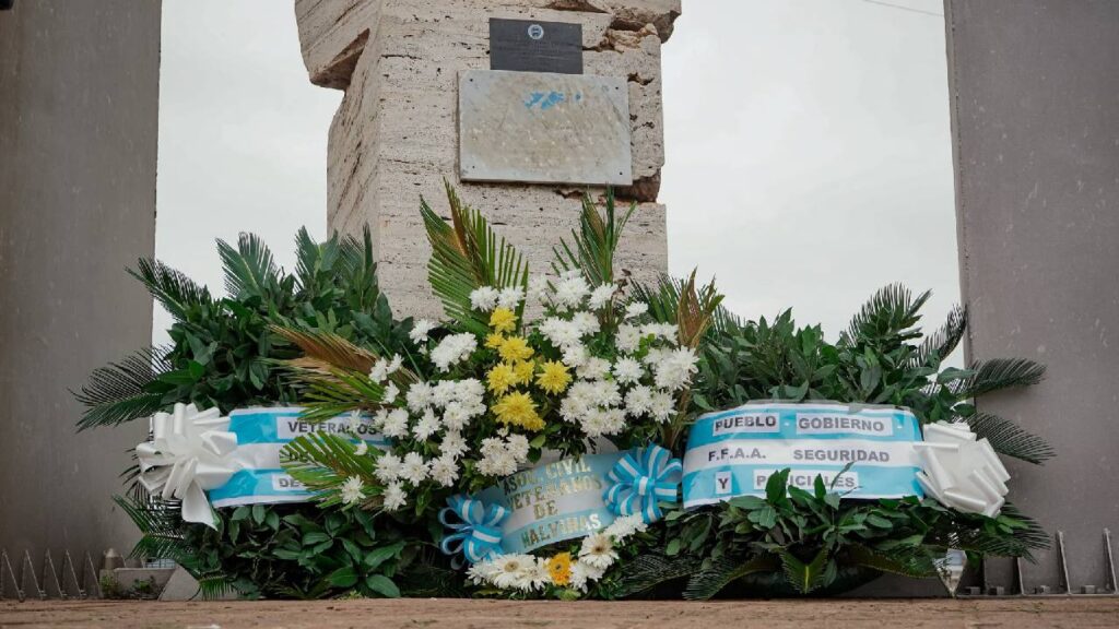 El intendente Leonardo Stelatto, junto a diputados provinciales y autoridades municipales, depositó una ofrenda floral al pie del monumento. El jefe comunal afirmó que «hace 43 años venimos recordando este día, porque entendemos que hay un derecho de seguir reclamando soberanía por nuestras Islas Malvinas».