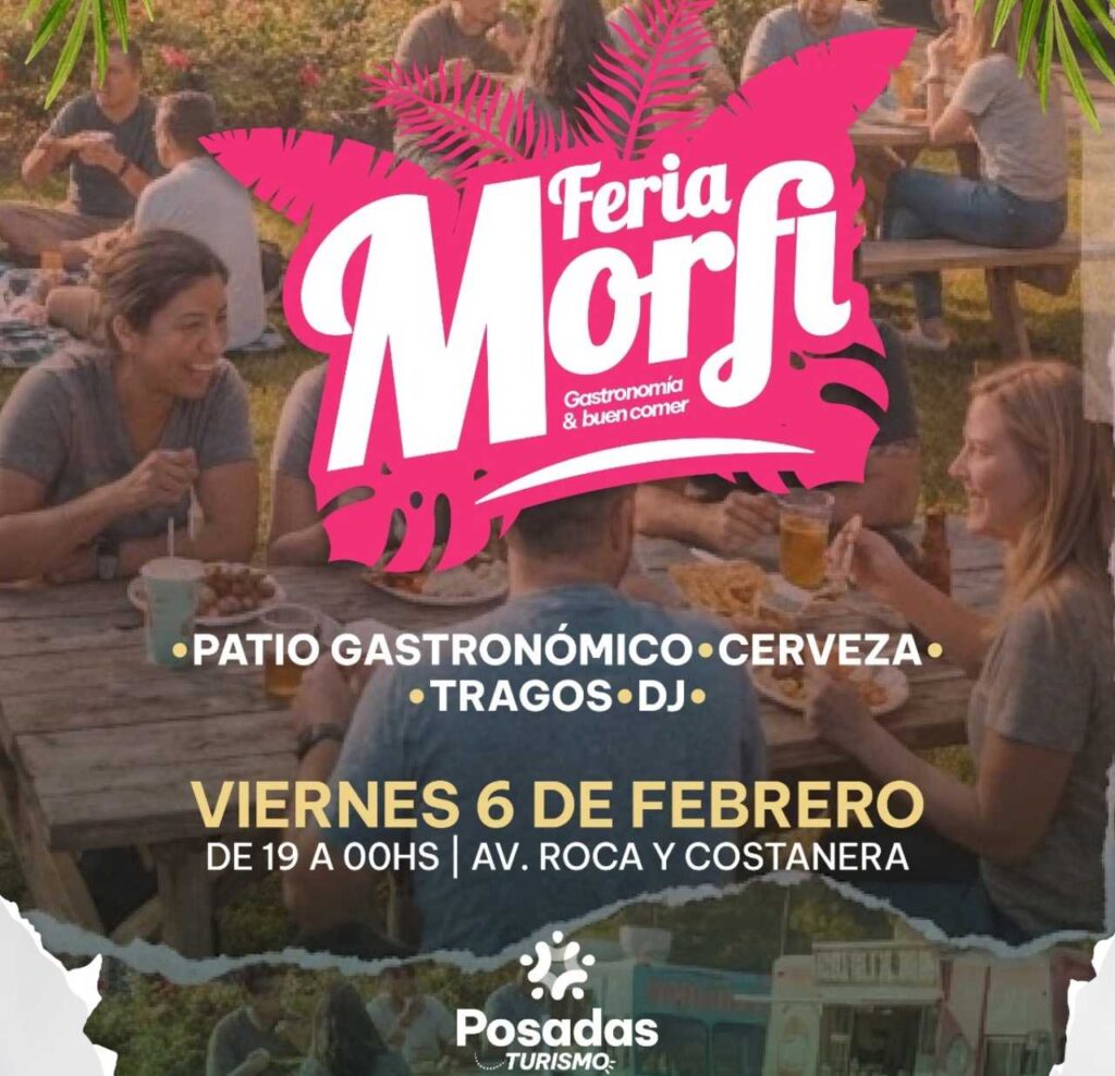 Posadas suma una nueva propuesta para vecinos y visitantes con la llegada de la Feria Morfi, un evento que combina gastronomía, bebidas, música y encuentro en uno de los espacios más atractivos de la costanera posadeña. La cita será el viernes 6 de febrero, de 19 a 00 hs, en el sector de Avenida Roca y Costanera, donde se montará un patio gastronómico con foodtrucks de gastronomía y bebida pensado para disfrutar al aire libre y con vista al río.