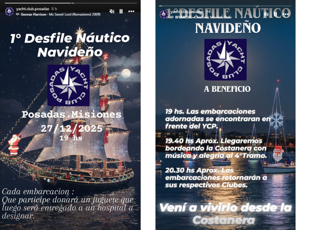 Posadas se prepara para vivir un espectáculo inédito: el 1° Desfile Náutico Navideño, organizado por el Yacht Club Posadas, que se realizará el sábado 27 de diciembre desde las 19 horas en la costanera. El evento será a beneficio y combinará música, espíritu festivo y solidaridad, ya que cada embarcación participante donará un juguete que luego será entregado a un hospital a designar.