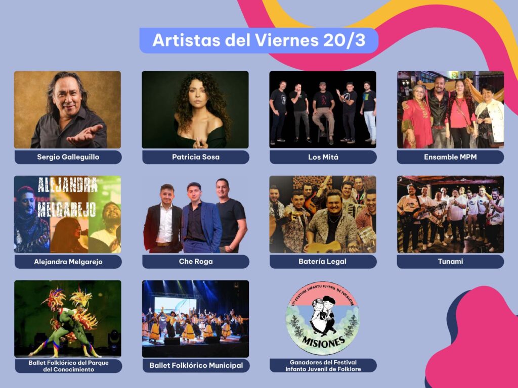 Las actividades se desarrollarán desde las 19:30 hs, con acceso libre para toda la comunidad. La programación del viernes incluirá la participación de Sergio Galleguillo, Patricia Sosa, Los Mitá, Che Roga, Ensamble MPM, Alejandra Melgarejo, Batería Legal y Tunami. En tanto, el sábado subirán al escenario Los Campedrinos, FMK, Evanna Sanz, Caramba, Vanesa Avellaneda, Chamamé Chamigo y Banco Local.
