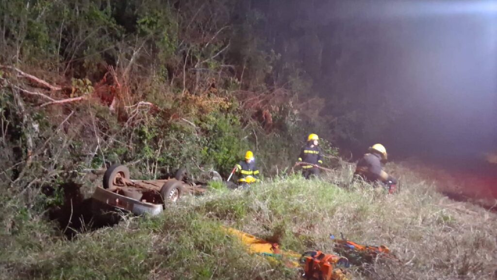 El hecho se registró cerca de las 19:40 sobre la Ruta Nacional 14, a la altura del kilómetro 819, cuando un automóvil Renault Clio que circulaba en sentido Cerro Azul–San José despistó y terminó volcado en la banquina terrada.