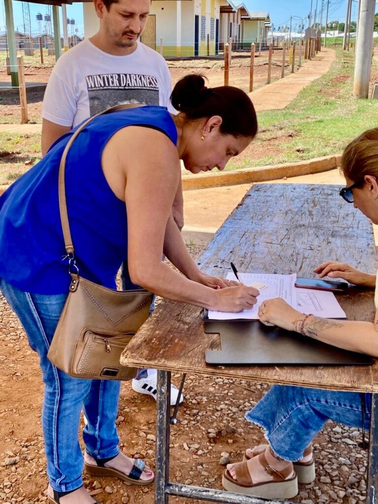 Al finalizar la recorrida, aquellas familias que manifestaron su conformidad con la información recibida y las condiciones observadas respecto a la vivienda,  firmaron un acta ante el escribano como paso previo indispensable para avanzar hacia la adjudicación formal de las casas.