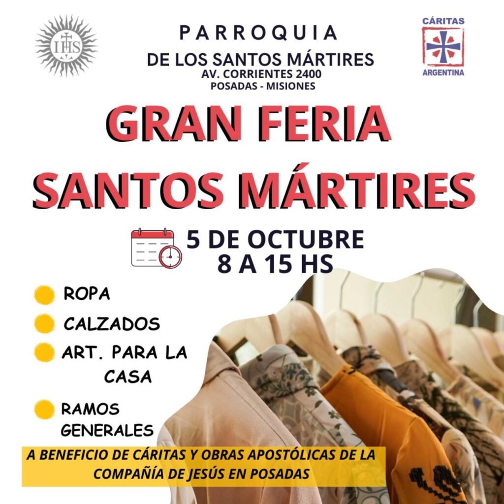 Este sábado 5 desde las 8 y hasta las 15h se realizará una nueva edición, la undécima, de la Gran Feria de los Santos Mártires, en el tinglado ubicado en la Parroquia del mismo nombre que se encuentra ubicada en avenida Corrientes 2400.