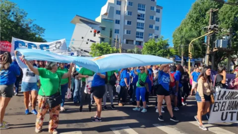La manifestación por el paro de la CGT llegó a la Plaza 9 de Julio de Posadas